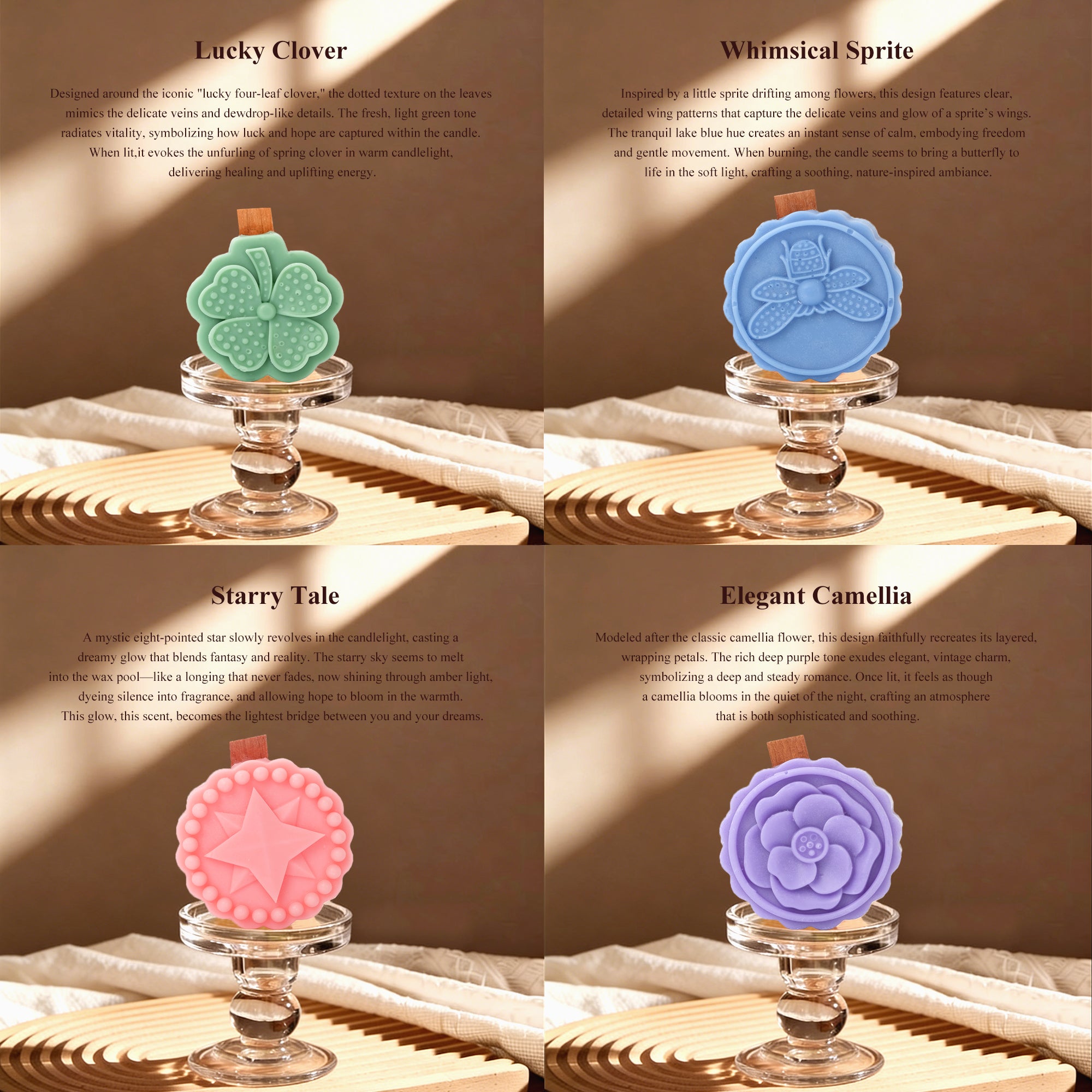 Versatile Home Decor: More than just a source of fragrance, each candle boasts a unique shape that serves as a charming decorative piece. Whether placed in the living room, bedroom, or office, they effortlessly enhance your space with a touch of elegance and cozy style.