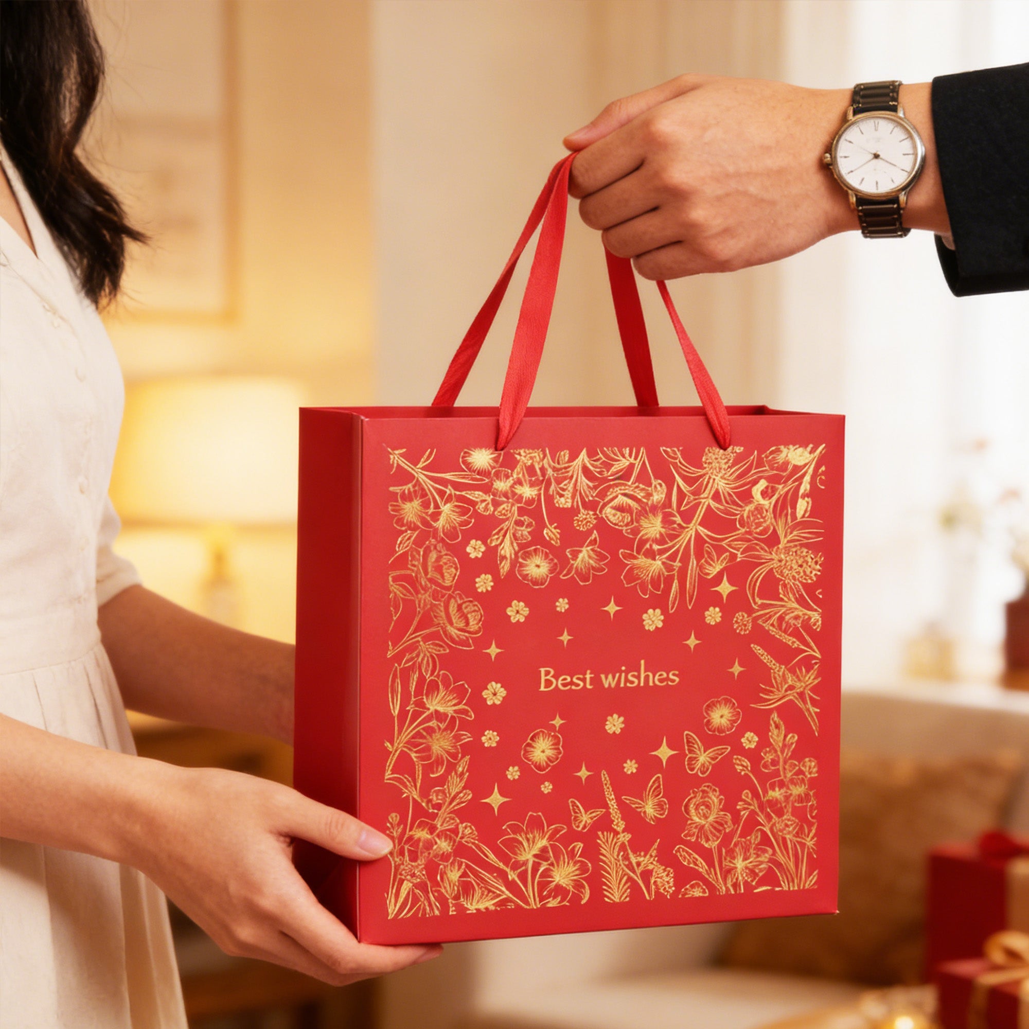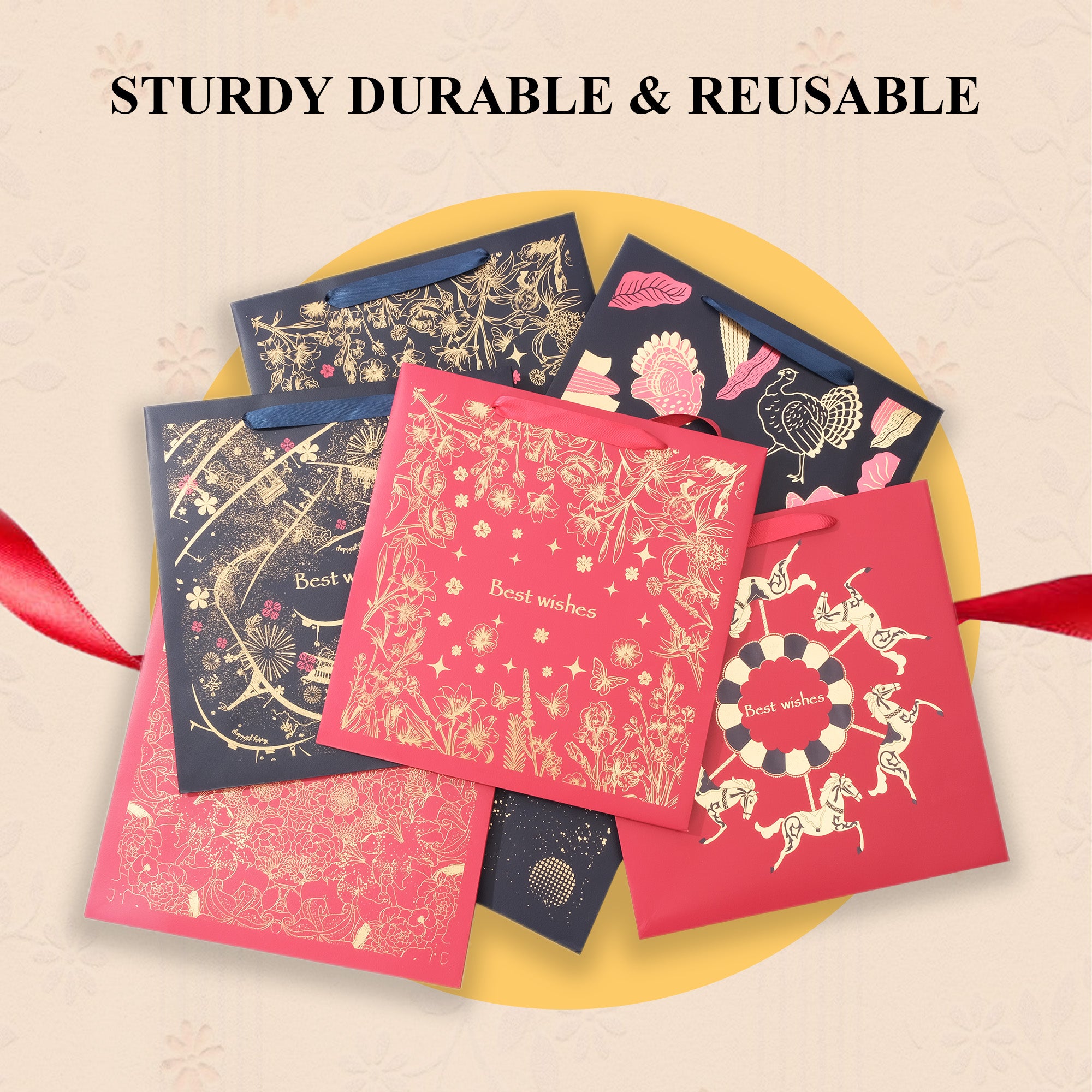 STURDY AND STYLISH DESIGN - Crafted from durable, eco-friendly materials, this gift bag is designed for long-lasting use. It features a reinforced bottom for added strength and is capable of securely holding various gift items without risk of tearing or collapsing.