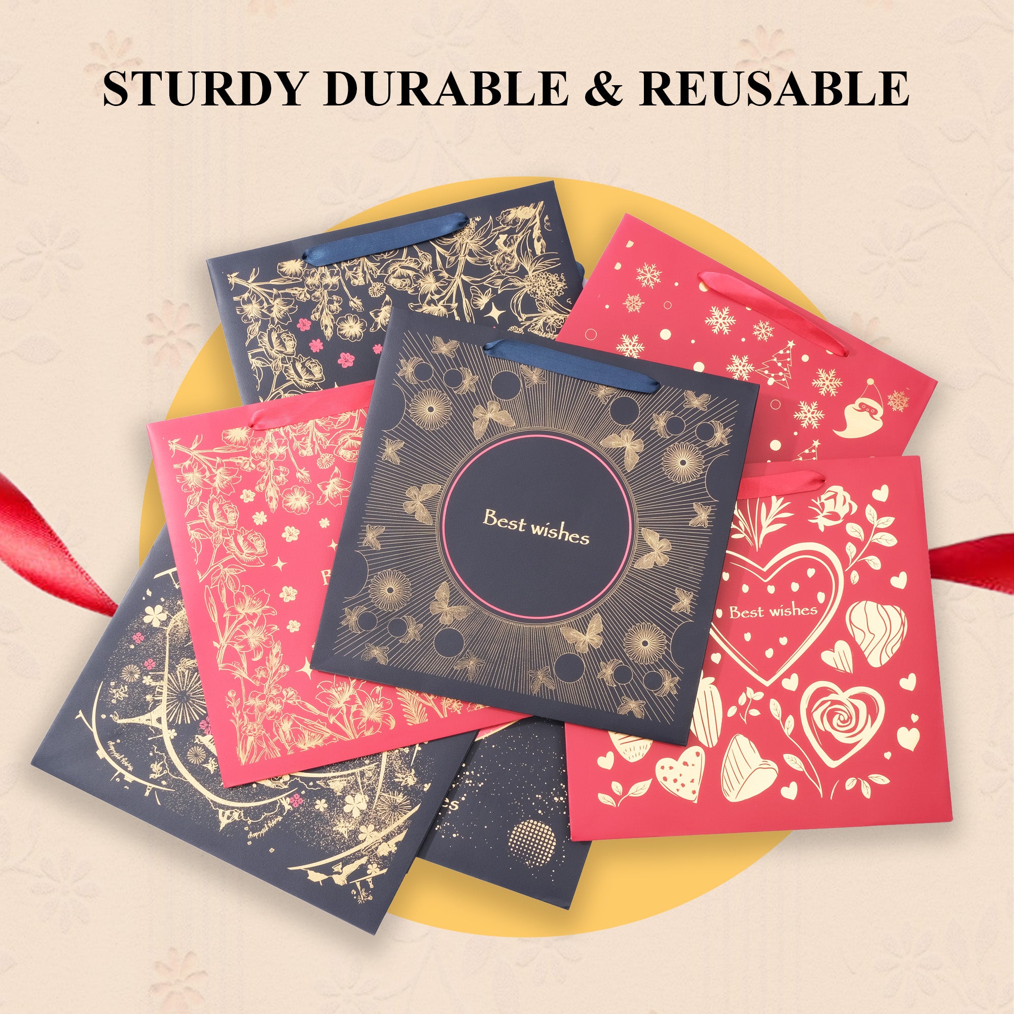 STURDY AND STYLISH DESIGN - Crafted from durable, eco-friendly materials, this gift bag is designed for long-lasting use. It features a reinforced bottom for added strength and is capable of securely holding various gift items without risk of tearing or collapsing.