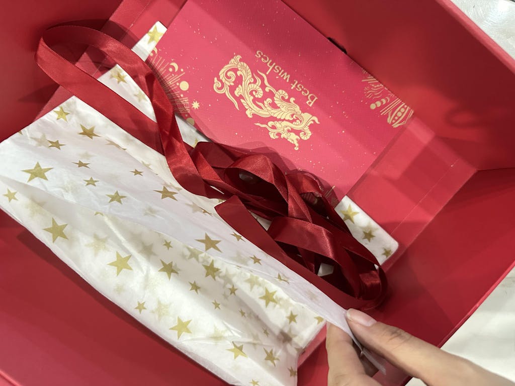 Very impressed with the sturdiness of the box and the included card. It has a nice, textured feel that writes on beautifully without the ink bleeding.