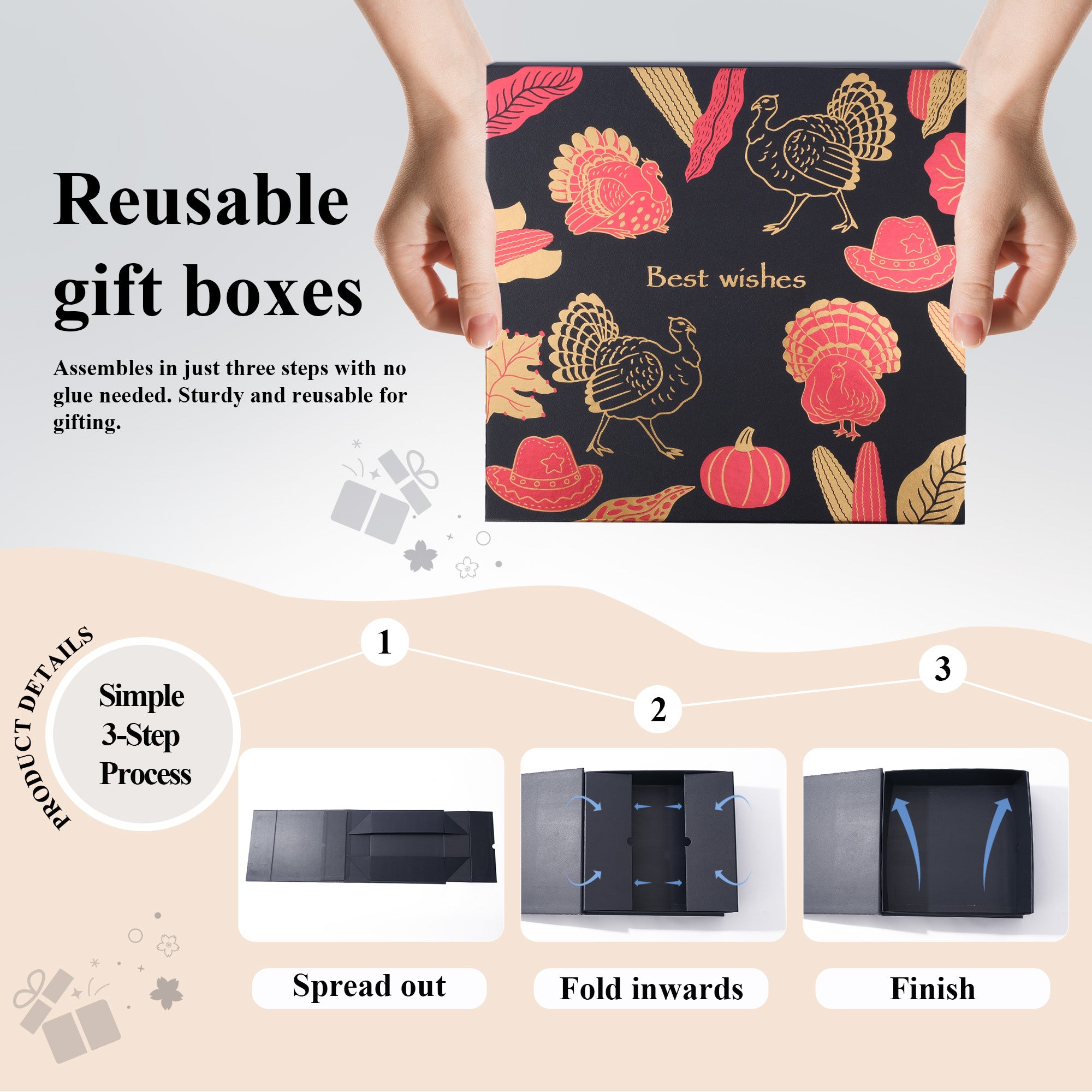 this gift box is built to be reused multiple times. Its durable construction and timeless design promote sustainability by reducing single-use wrapping waste.
