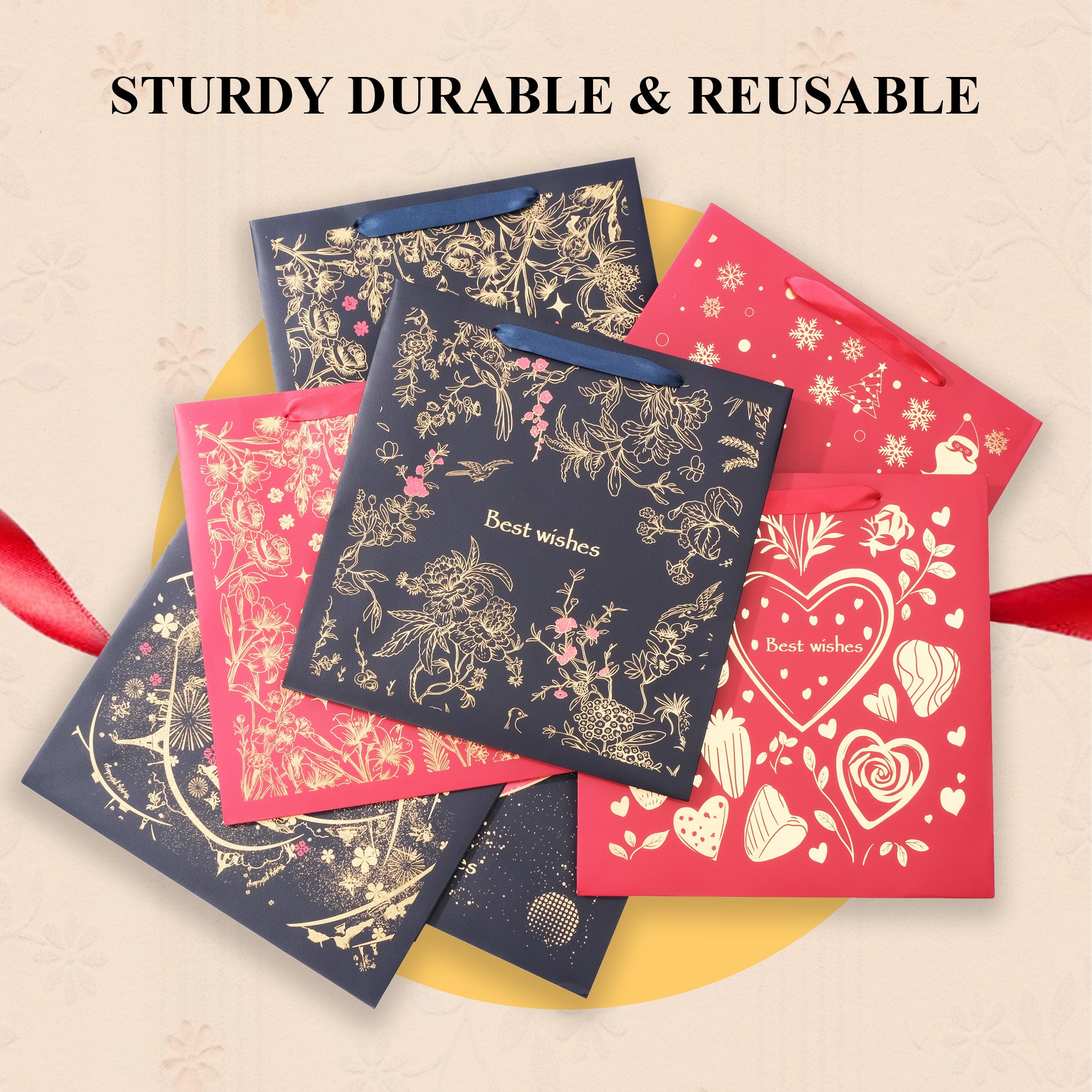 STURDY AND STYLISH DESIGN - Crafted from durable, eco-friendly materials, this gift bag is designed for long-lasting use. It features a reinforced bottom for added strength and is capable of securely holding various gift items without risk of tearing or collapsing.