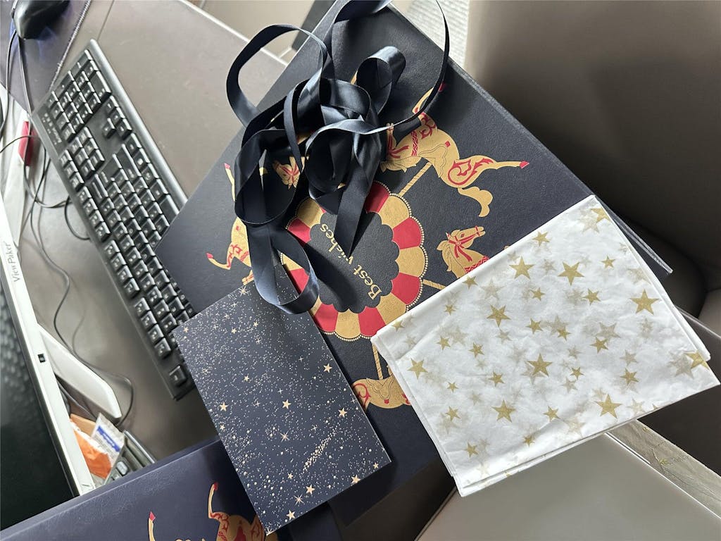 This set is a lifesaver. I��m terrible at wrapping, but with the pre-made box and the shredded paper, it looked like a professional job. The included card was a sweet bonus.
