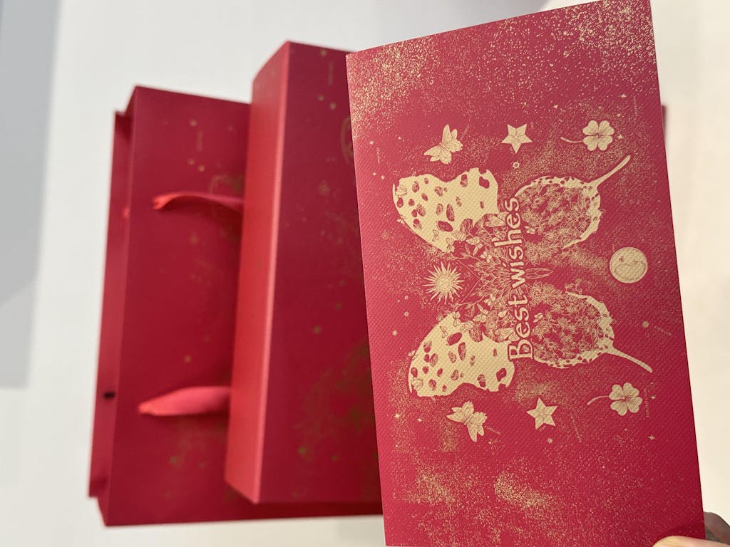 I bought this for the box and tissue paper, but the included card was a nice surprise. High quality and matched the aesthetic.