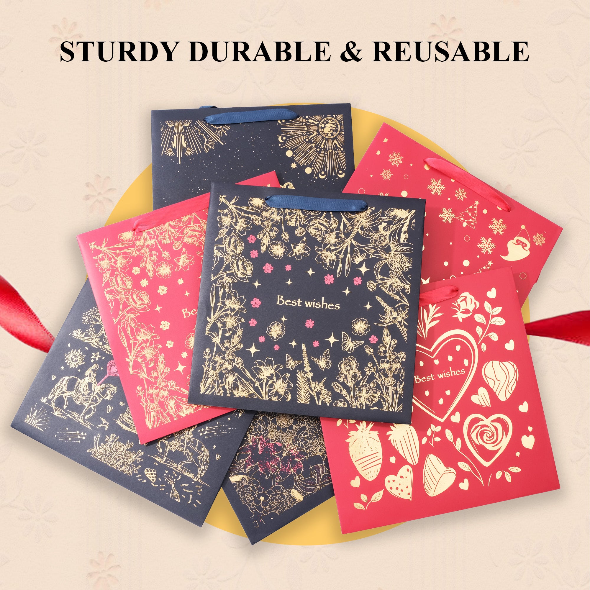 STURDY AND STYLISH DESIGN - Crafted from durable, eco-friendly materials, this gift bag is designed for long-lasting use. It features a reinforced bottom for added strength and is capable of securely holding various gift items without risk of tearing or collapsing.