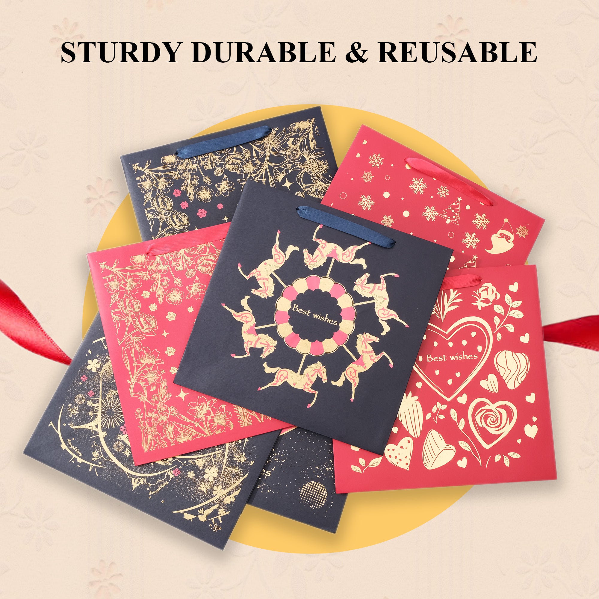 STURDY AND STYLISH DESIGN - Crafted from durable, eco-friendly materials, this gift bag is designed for long-lasting use. It features a reinforced bottom for added strength and is capable of securely holding various gift items without risk of tearing or collapsing.